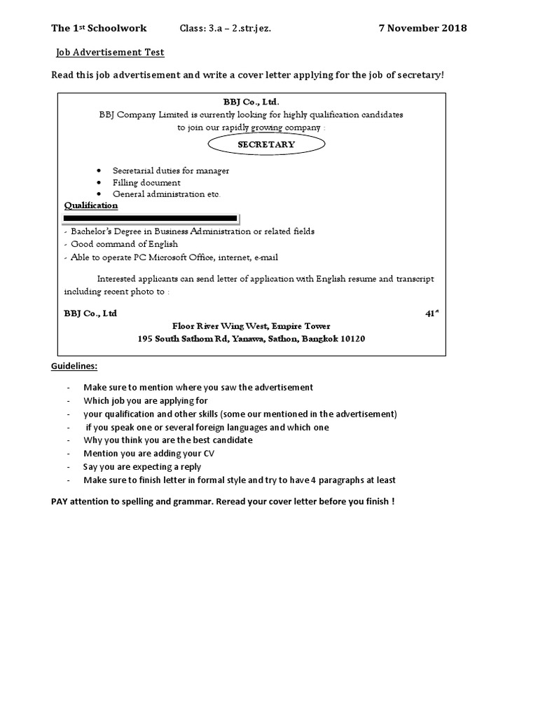 Sample Cover Letter For The Post Of Secretary Assignment Point