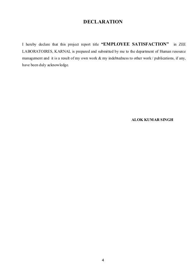 Mba Project Report At Employee Satisfaction