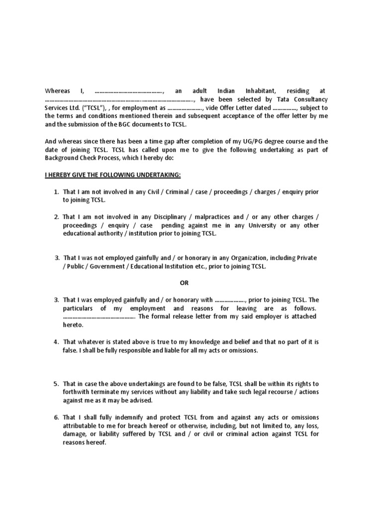 Tcs Affidavit Notarized Undertaking Format Public Law Virtue